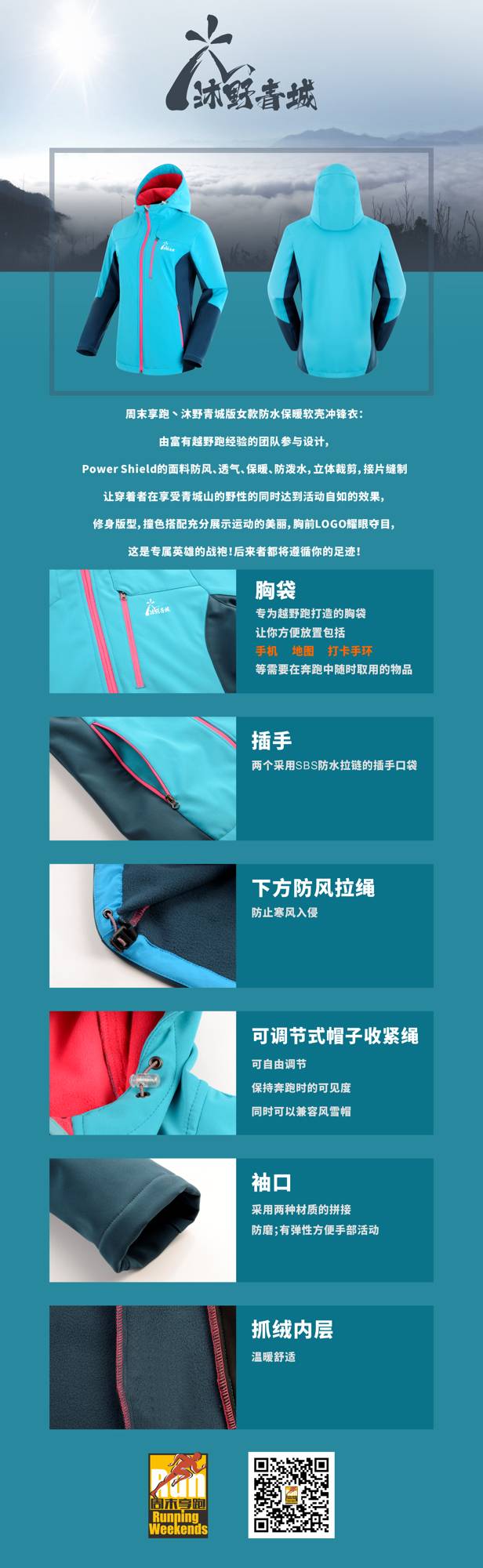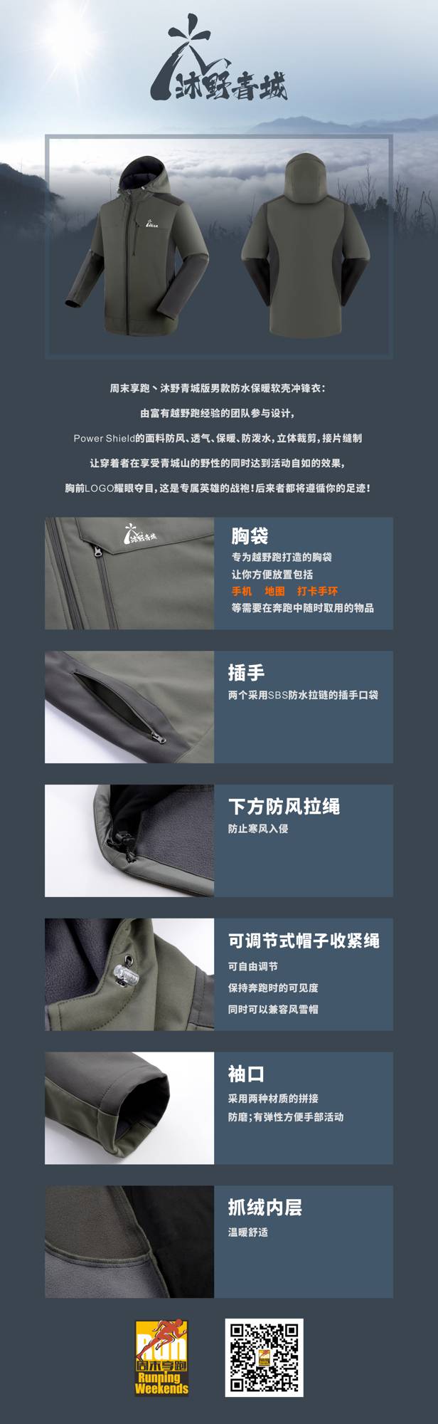 这是周末享跑团队精心打造的沐野青城完赛软壳冲锋衣