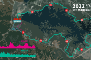 马鞍山(起点)→三岔湖环湖赛道→雷打石头(104乡道)→三岔湖环湖西路辅道→双简路辅道→鳌鱼石→三岔湖环湖赛道→马鞍山;赛道全长10公里,累积爬升101米,关门时间3小时。