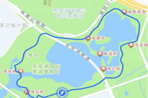 活动参与者从东安湖公园书香广场出发-东安阁-大运广场-火炬塔-知北营地-琴台桥-书香广场,全程5km,完成后可在终点领取完赛奖牌。