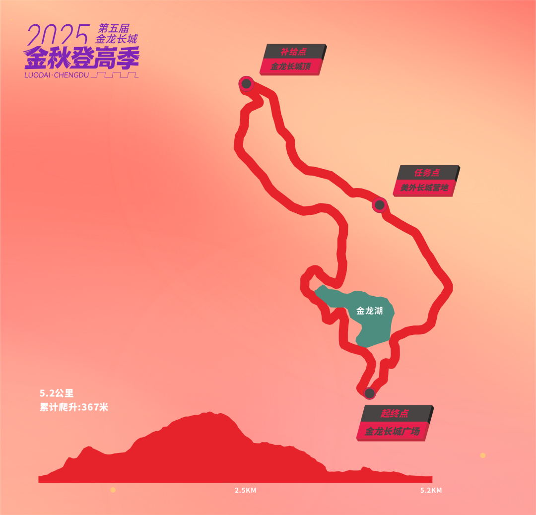本次赛事分为户外跑步和户外项目挑战两部分,选手需要完成约5公里367爬升的长城景区和山地步道跑步,并且在线路上的1个任务点完成3个户外项目挑战,关门时间3个小时。
