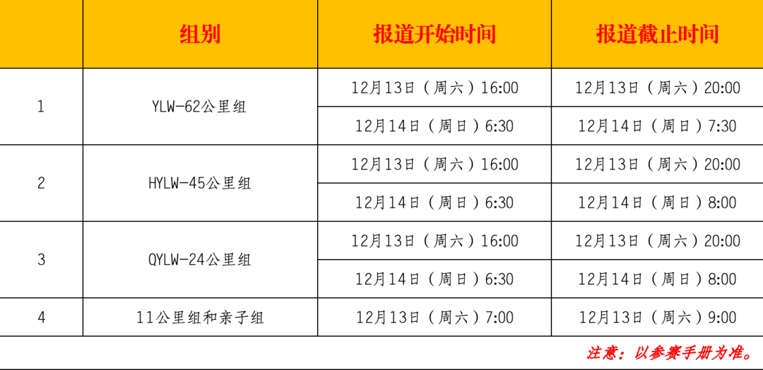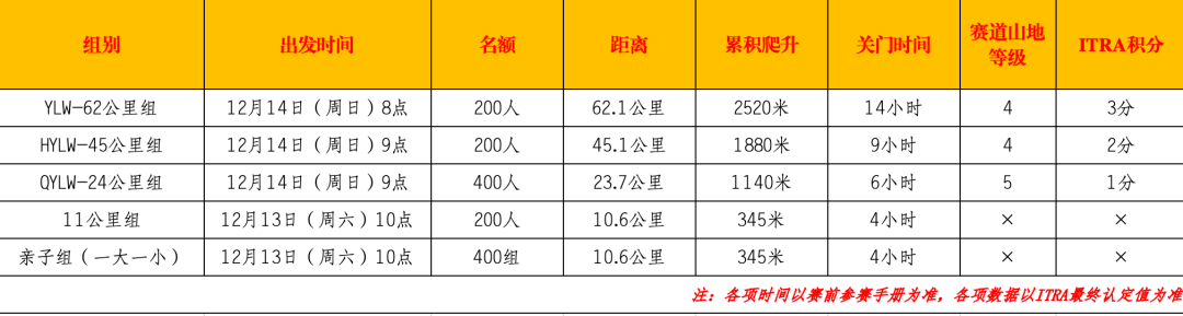• 12月14日(周日)9点:HYLW-45公里组、QYLW-24公里组