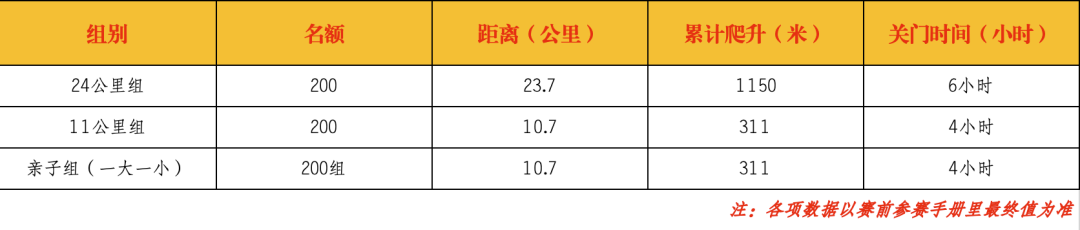 注:以最终公布的数据为准;如遇特殊情况和突发事件或暴风,雷电,暴雨等恶劣天气时,组委会有权决定熔断活动,活动者须服从指挥。