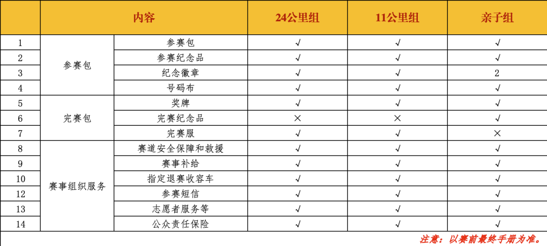 注:以最终公布的数据为准;如遇特殊情况和突发事件或暴风,雷电,暴雨等恶劣天气时,组委会有权决定熔断活动,活动者须服从指挥。