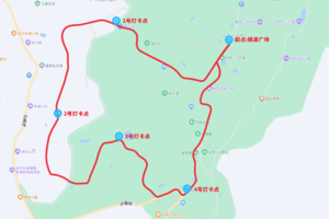 线路:桃源广场(起点)→道→西一门→红岩路→龙泉山荒野茶摊→南二门→大花路→滴水亭→桃源广场(终点),全长约5公里。