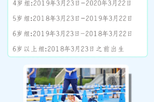 组别和规模:4岁组、5岁组、6岁组和6岁以上组,共计100组家庭,额满提前截止;其中儿童作为竞赛运动员参赛,家长作为观众和运动员辅助人员。