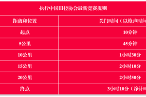 为了保证参赛运动员比赛安全、顺利,比赛期间设关门时间如下。参赛者在规定的关门时间内未跑完对应距离的参赛者须立即停止比赛,退出赛道,以免发生危险。退出比赛者可乘坐组委会提供的摆渡车到达终点。
