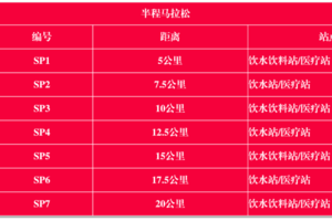 半程马拉松(21.0975公里):男子组和女子组,赛道全长21.0975公里,关门时间3小时10分,7000人;不抽签,先到先得,额满即止。