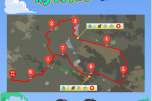 亲子组(一大一小),总距离:8.5km,宝胜村村委会(起点)→宝胜村荷塘月色→萤火虫之家→宝胜葡萄基地观景瞭望台→宝胜村二十四节气广场→宝胜村荷塘月色→宝胜村村委会(终点),总关门时间:2小时,线路和8公里组完全相同。