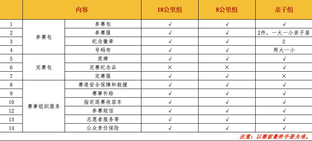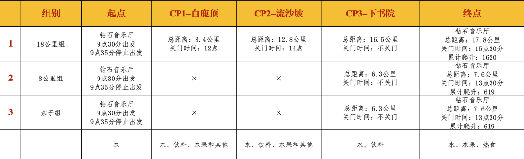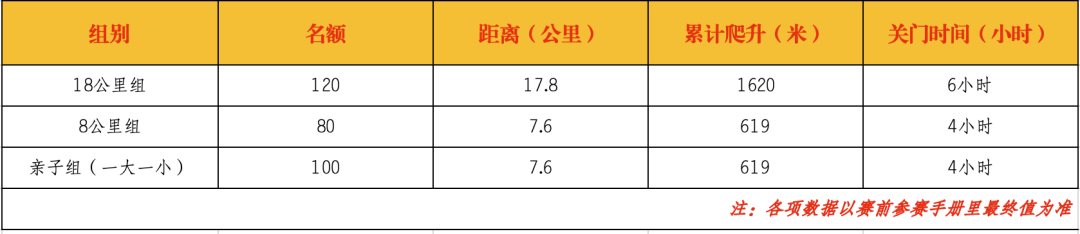 注:以最终公布的数据为准;如遇特殊情况和突发事件或暴风,雷电,暴雨等恶劣天气时,组委会有权决定熔断活动,活动者须服从指挥。