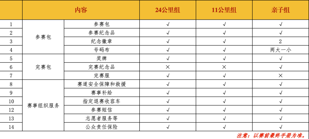 注:以最终公布的数据为准;如遇特殊情况和突发事件或暴风,雷电,暴雨等恶劣天气时,组委会有权决定熔断活动,活动者须服从指挥。